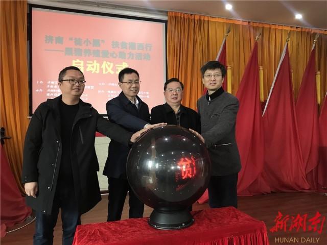 活動上,湘西州委常委、州人民政府副州長董懷敏,濟南日報報業(yè)集團(tuán)副總編輯、濟南時報社社長樊詳欽,濟南市農(nóng)業(yè)農(nóng)村局農(nóng)業(yè)農(nóng)村服務(wù)中心主任劉佩祿,花垣縣龍?zhí)舵?zhèn)人大主席龍玉章共同按下啟動球,開啟“濟南‘徒小黑’扶貧湘西行——黑豬養(yǎng)殖愛心助力行動”。
