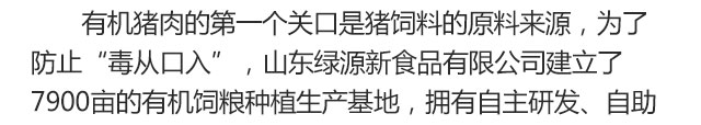 有機(jī)豬肉的第一個(gè)關(guān)口是豬飼料的原料來(lái)源,為了防止“毒從口入”,山東徒河黑豬食品有限公司建立了7900畝的有機(jī)飼糧種植生產(chǎn)基地