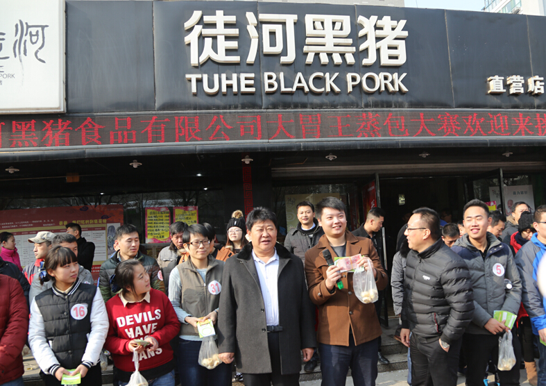 激烈的徒河黑豬慶功包PK大賽采用了三分鐘計(jì)時(shí),統(tǒng)計(jì)選手在規(guī)定時(shí)間內(nèi)吃包子的數(shù)量,第一名者可獲得10000元的現(xiàn)金獎(jiǎng)勵(lì),其他參賽選手獲得徒河黑豬禮盒紀(jì)念獎(jiǎng)品,經(jīng)過(guò)兩輪的角逐,8號(hào)選手拔得頭籌以三分鐘吃下29個(gè)徒河黑豬慶功包獲得冠軍。