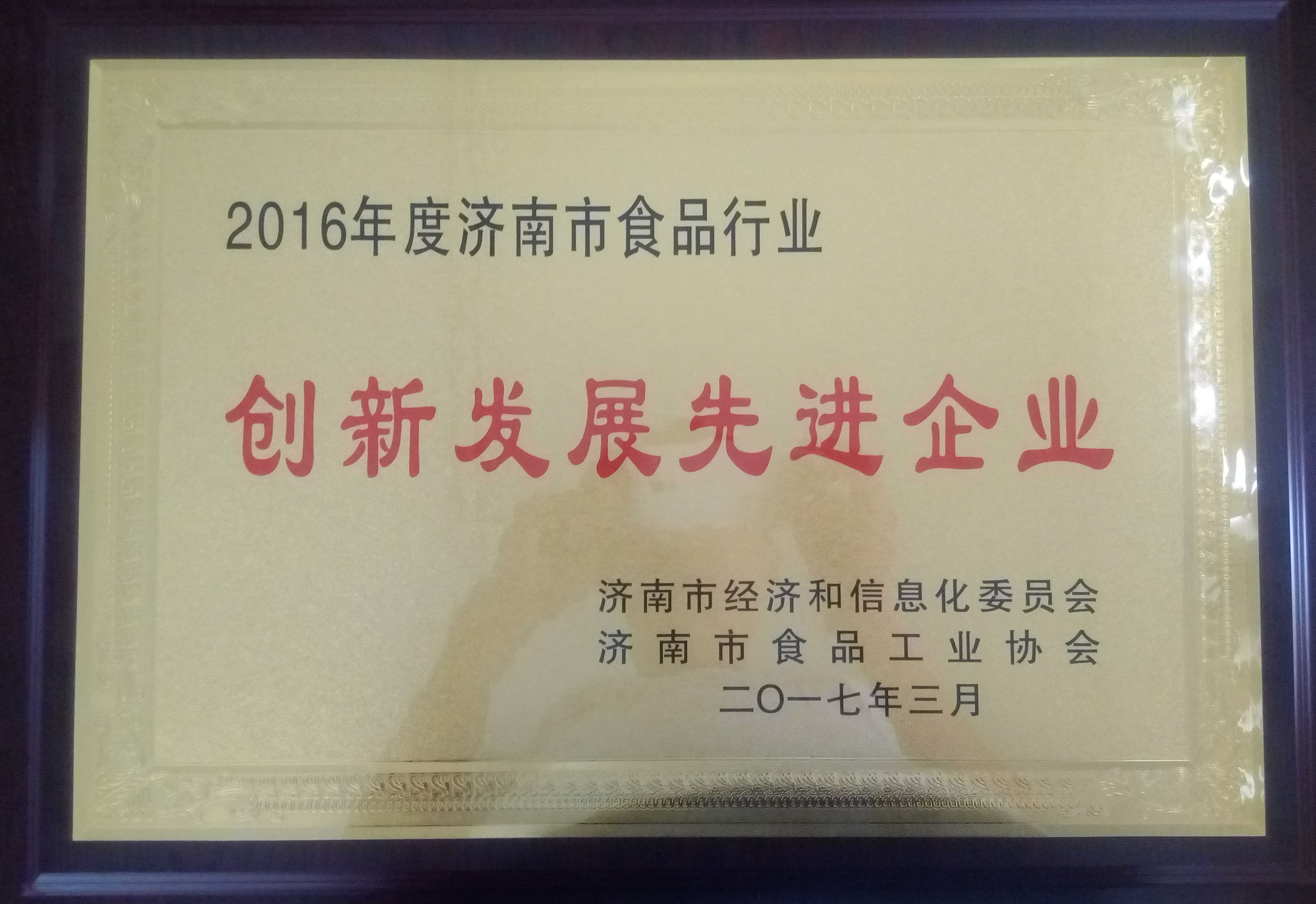 徒河食品被評為“2016年度濟南市食品行業(yè)創(chuàng)新發(fā)展先進企業(yè)”