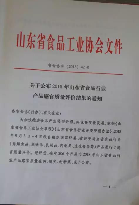 喜賀徒河食品再登獎(jiǎng)臺(tái),榮摘山東省食品行業(yè)產(chǎn)品感官質(zhì)量金獎(jiǎng)