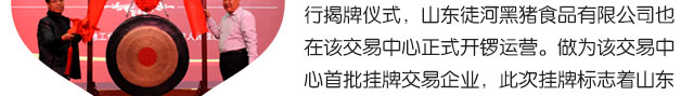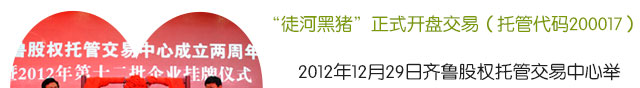 2012年12月29日齊魯股權(quán)托管交易中心舉行揭牌儀式,山東徒河黑豬食品有限公司也在該交易中心正式開鑼運(yùn)營